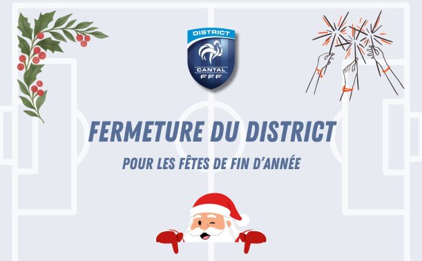 Le District du Cantal de Football vous informe que ses bureaux seront fermés à l'occasion des fêtes de fi...