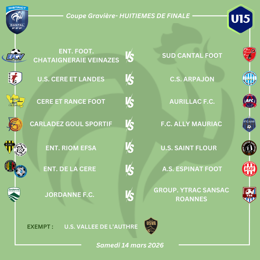 • les affiches des 8ème de finale de la Coupe Gravière (U15)