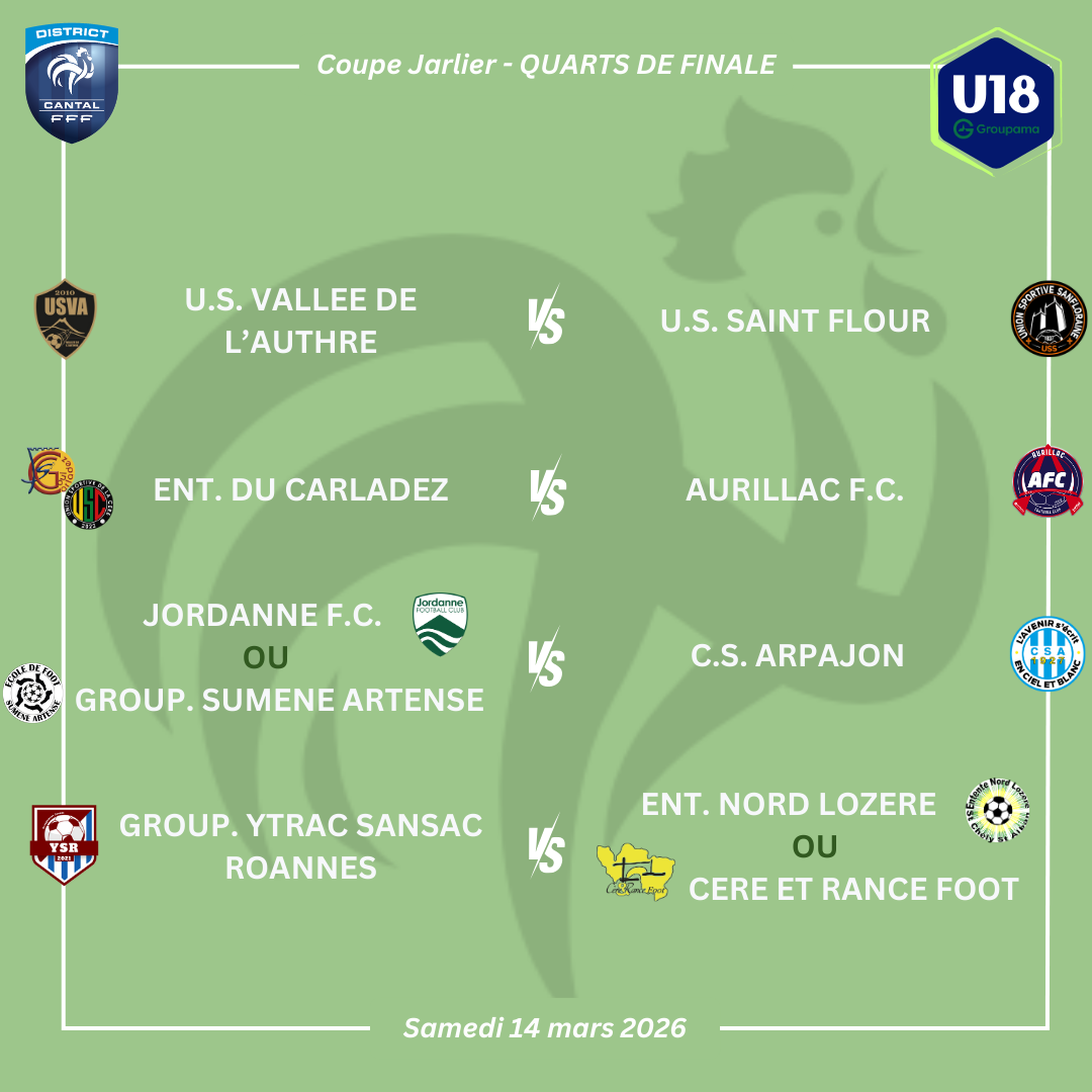 • les affiches des 1/4 de finale de la Coupe Jarlier (U18)